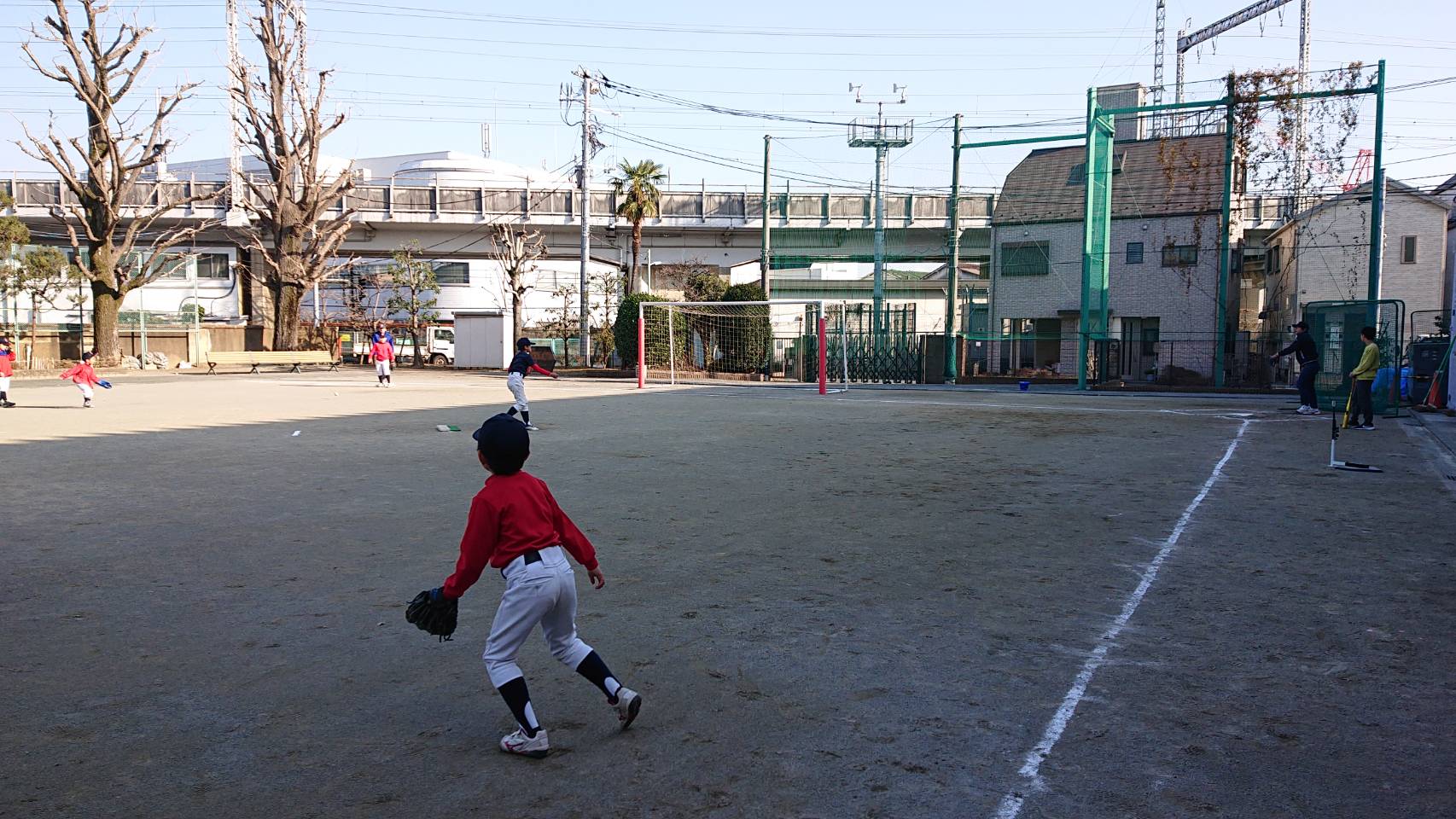 学童・ジュニア、杜松ホームグラウンドで練習です。