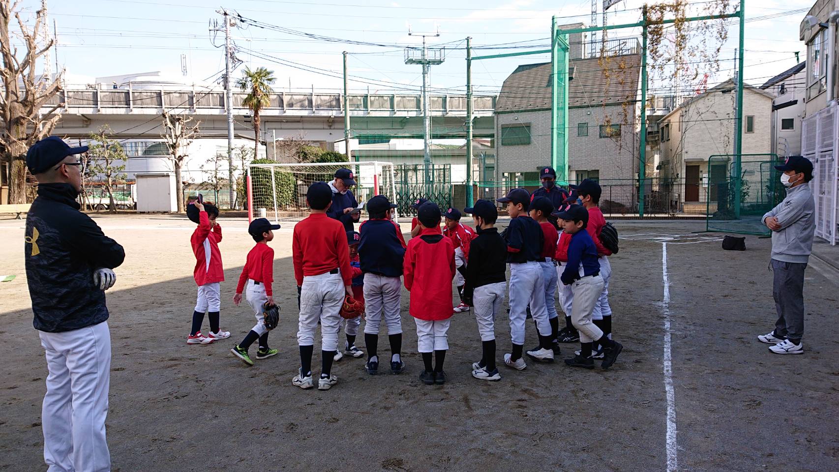 さてこれから合同練習ですよー。監督説明中。
