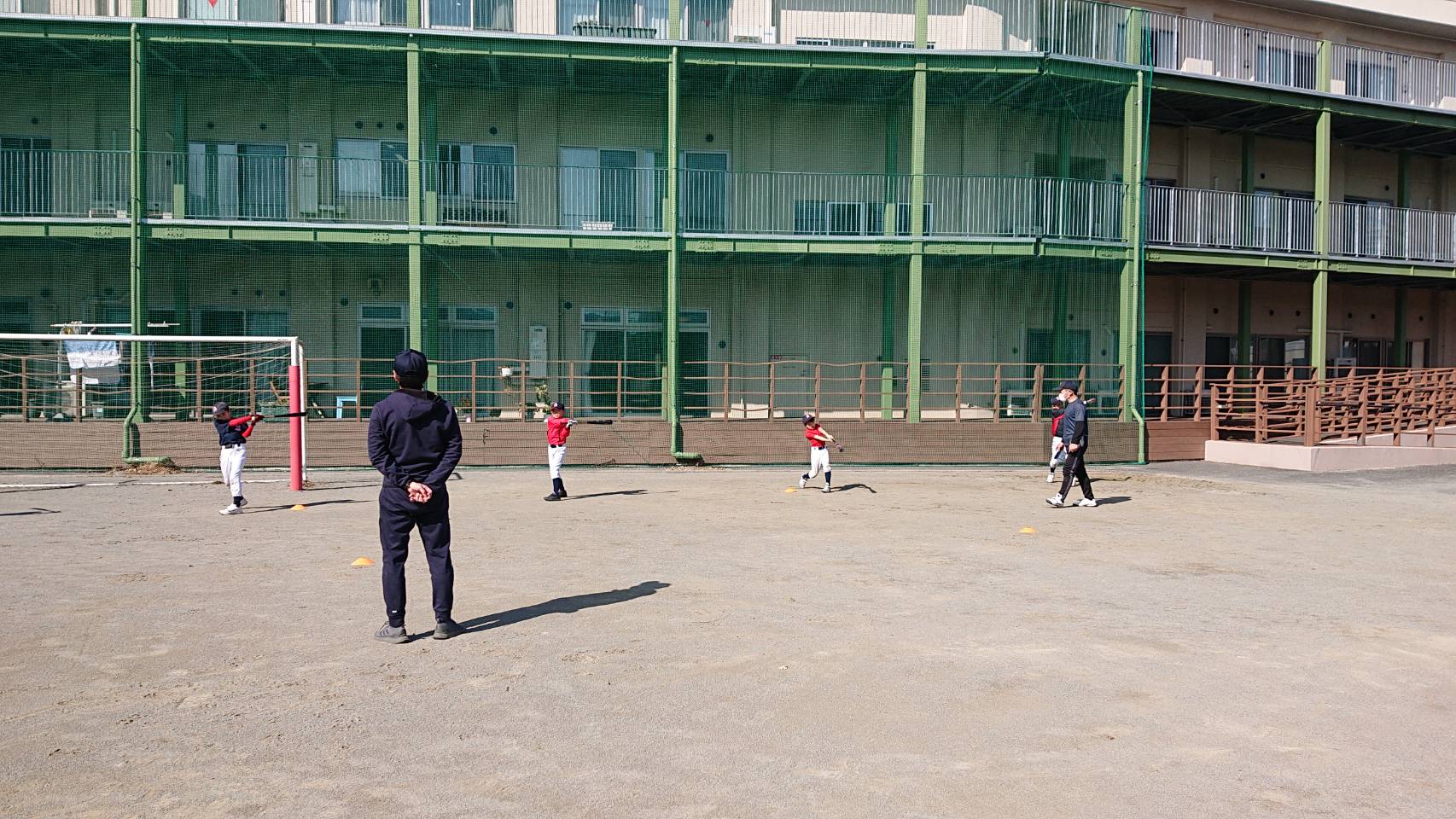 学童・ジュニア、杜松ホームグラウンドで練習です。